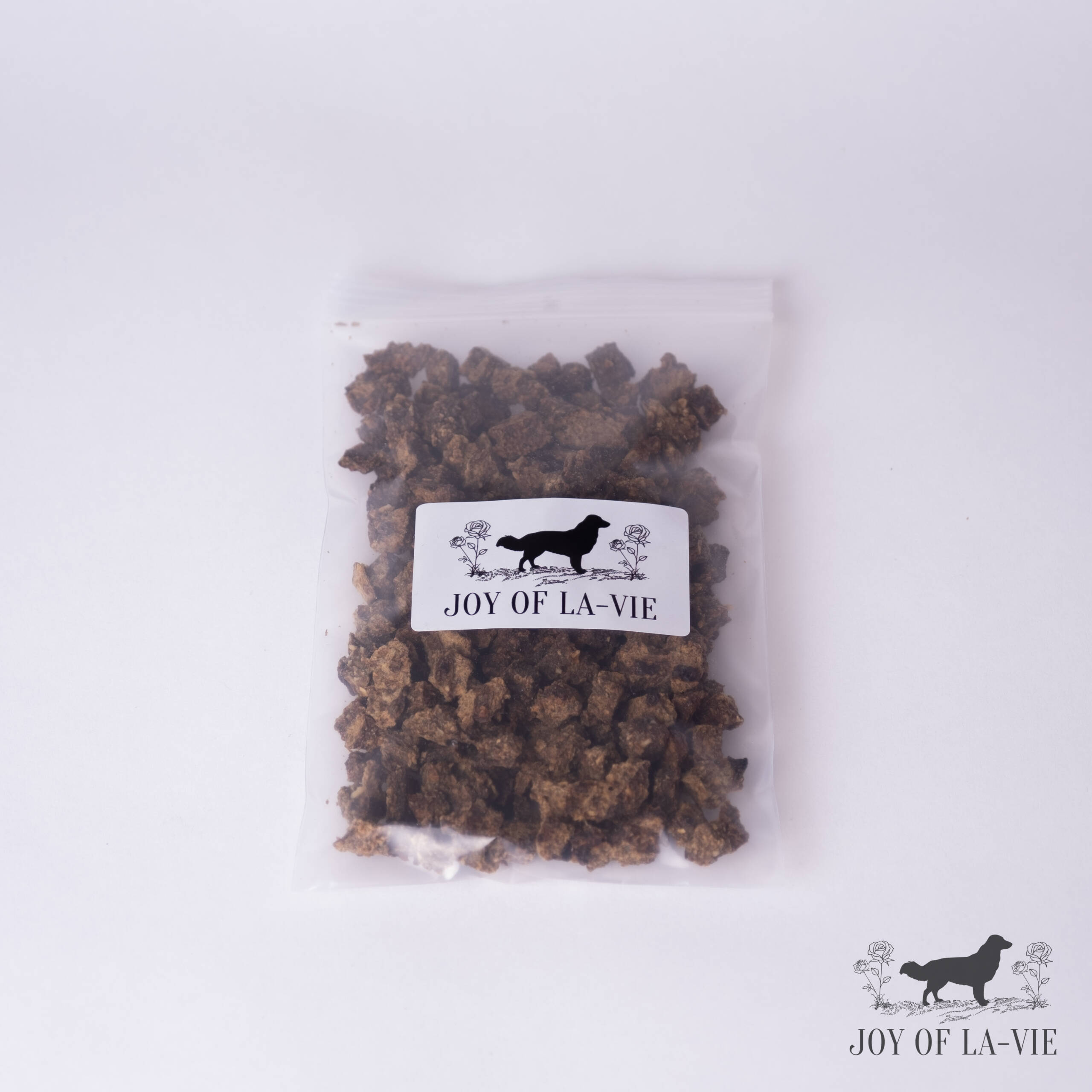 Perfect om mee te trainen! Deze krokante trainer is ongeveer 0.5cm x 0.5 cm groot. De Crunchy Trainer is mooi klein van formaat en lekker crunchy, kleinere honden en pups zullen hier wat langer op moeten kauwen. Door het kleine formaat zijn de trainers ook handig om te gebruiken voor denkspelletjes en snuffel speelgoed. De Crunchy Trainer is 100% gemaakt van één eiwit, waardoor het ook een zeer geschikte beloning is voor honden met een allergie of speciaal dieet.